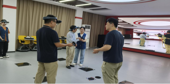 紧接着,双方来到课程思政虚拟仿真中心,沉浸式体验混合现实(MR)教学环境的独特魅力。戴上头戴式设备,郑贵洲教授等人仿佛置身于虚实交融的教学场景中,既能清晰地观察实体标本的细节,又能与虚拟场景实现自然交互。在这样的环境下,心肺复苏操作的规范流程、人体解剖结构的精妙构造等教学内容变得触手可及。这种创新教学模式将抽象的思政理论转化为生动具象的教学场景,极大增强了教学的现场感与代入感,充分展现出beats365唯一官网入口官网“三维融合、数智赋能”的课程思政特色。
