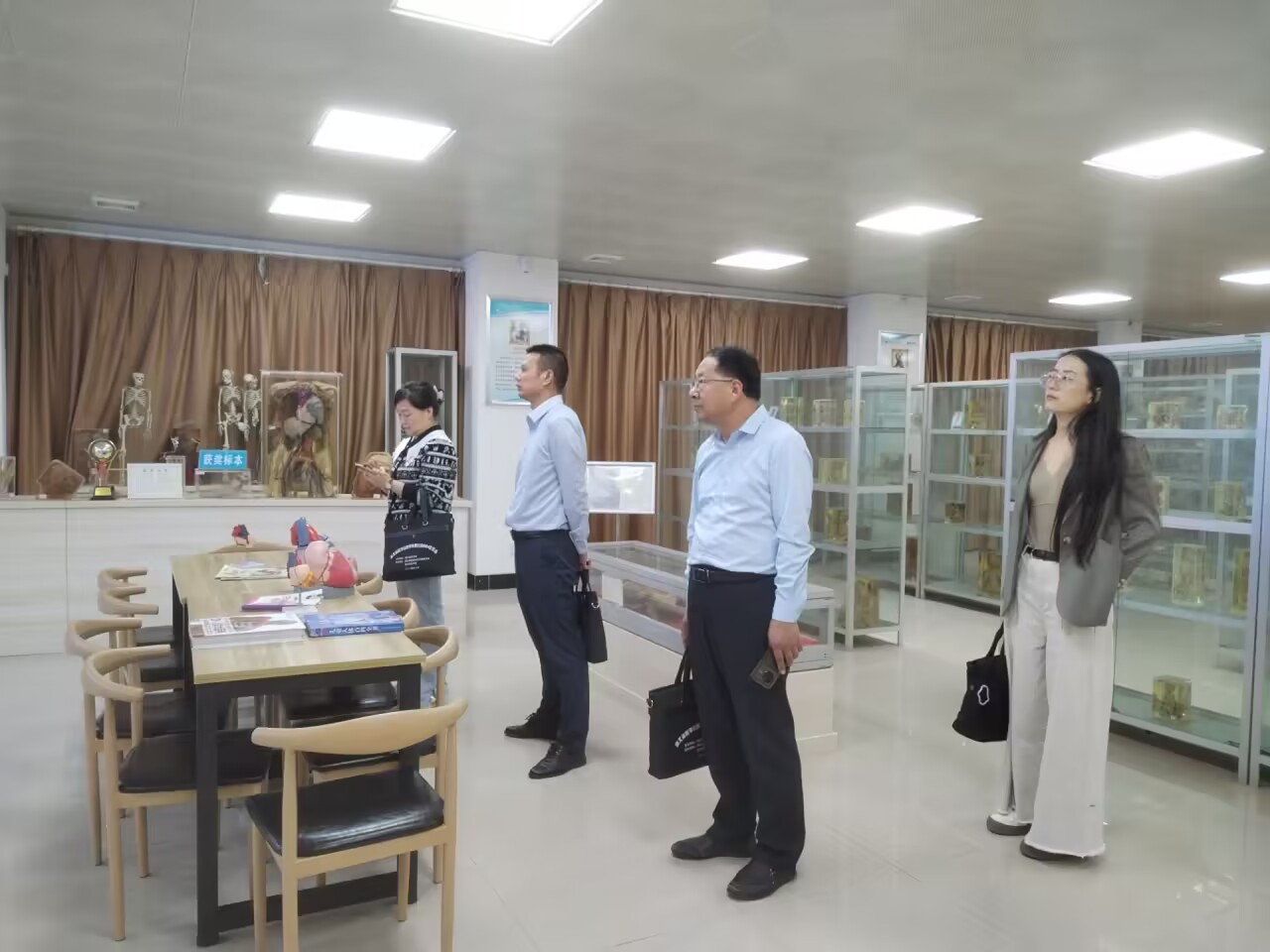 会上,beats365唯一官网入口官网蔡飞经理首先对湖北文理公司医学部领导一行表示欢迎,向来院领导介绍了beats365唯一官网入口官网的基本情况、人才培养、团队建设等情况,姜洪溪部长也介绍了湖北文理公司医学部相关情况。接着双方就党建、教学科研、质量工程建设、团队建设、产教融合等工作进行了细致全面的交流与探讨。座谈结束后,湖北文理公司医学部领导一行依次参观beats365唯一官网入口官网创新实验室、环境疾病与全健康校级重点实验室、全国样板党支部、湖北省级科普基地生命科学标本馆等。