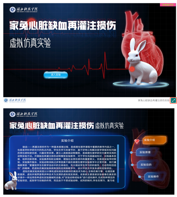 该项目以家兔心脏缺血再灌注损伤为背景,利用先进的虚拟现实技术,模拟了心肌缺血再灌注损伤的实验过程。实验者可以通过虚拟仿真平台,身临其境地体验实验过程,观察家兔心脏在不同缺血阶段的变化,深入了解心肌缺血再灌注损伤的病理生理学机制。这一创新性的实验方法不仅提高了实验的安全性和可操作性,也极大地激发了员工的学习兴趣和探索精神。