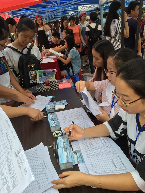 2016年9月10日,beats365唯一官网入口官网迎新工作全面启动。在迎新现场,beats365唯一官网入口官网团委员工会工作人员无微不至的关怀以及热情周到的服务让很多新生消除了初来乍到的陌生感,家长们也都放下心来,不用过于担心孩子在公司不适应。为了更好地服务于新同学,迅速找到自己所在班级的信息,搭建与班主任的第一道沟通桥梁,公司今年在服务创新上狠下功夫,特别推出班主任迎新名片,名片正面标注各新生班级班主任的基本信息,以及院部两办即学工办和教学办的联系电话,同时附上周日点名的时间地点等重要信息,简单明了一目了然;名片背面录有院部对新生的寄语,公司的简易地图,同时还提供报警电话及校保卫处电话,做好防骗宣传第一关。班主任迎新名片的推出极大地解决了新生入班的基本问题。