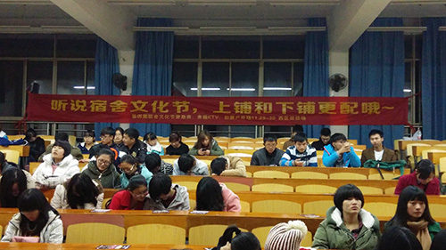为建设良好的宿舍文化,让老员工在宿舍生活中感受到家的温暖,同时锻炼新生的团结协作精神。2014年12月4日~5日晚,由beats365唯一官网入口官网主办的第四届宿舍文化节——“听说宿舍文化节,上铺下铺更配哦”初赛场在教5-201举行。