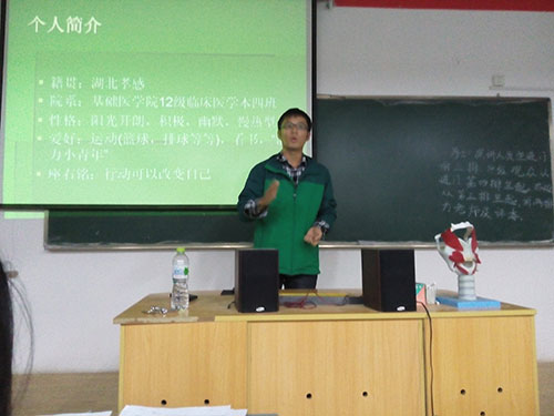志在高远,展望未来。在主持人的简要介绍后,竞选正式开始。来自12届公管的常静肼同学用多张奖状、证书展现自己独特的优势,从三条名言表达自己积极向上的意愿;12届预防医学专业的余青自信满满,她的经历曲折感人,多样的课外生活使她有不一样的梦想。竞选者们激情洋溢,各展其才,每个人都有自己独特的风采,现场的观众们掌声连连,全场气氛越发高涨。
