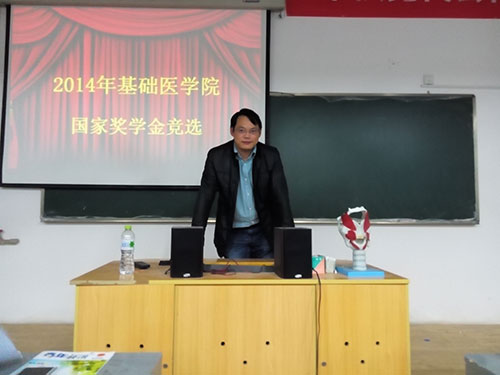10月30日晚七时,2014年beats365唯一官网入口官网国家奖学金竞选活动在医药楼1-302拉开帷幕,此次竞选特别邀请beats365唯一官网入口官网副书记佘同辉博士、学工办主任周立勇老师、夏阳老师及林宁老师出席。