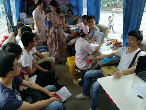 献血者在献血车内献血