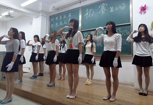 来自外国语公司的韩婷同学以一首新不了情震惊全场,让人热血沸腾之余,又体会到淡淡的哀愁与浓浓地相思。基础院杨松航同学的小品,幽默的语言中折射出对社会黑暗的讽刺,滑稽夸张的动作令人捧腹大笑。在歌唱类的表演中,一首首经典的老歌,不仅勾起了现场许多人的回忆,更引发了一波波的大合唱。为了进一步调动观众的积极性,发掘出更多身怀绝技的达人,现场还设置了现场报名的环节,为更多的人提供展现自我的舞台。