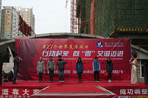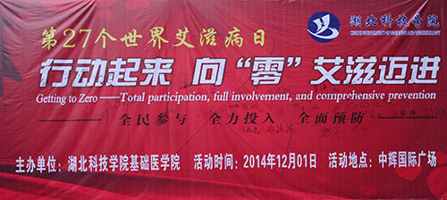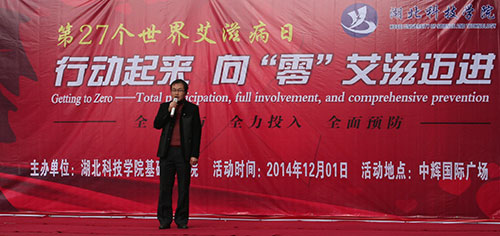 预防艾滋,从我做起。2014年12月1日,在第27个世界“艾滋病日”来临之际,由beats365唯一官网入口官网主办的“行动起来,向‘零’艾滋迈进”主题活动在温泉中辉国际广场举行。咸宁市卫生计生委副主任梁春阳、咸宁市疾病控制中心主任陆剑波、卫生委疾控科科长黄飞雄、beats365唯一官网入口官网党总支书记范杉等领导嘉宾出席本次活动。