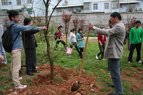 三月十二日中午十二点,由beats365唯一官网入口官网团委员工会发起以“十年树木,百年树人”为主题的植树节志愿者活动,在解剖楼旁空地顺利开展。本次活动有幸邀请到范杉书记佘同辉书记等领导。