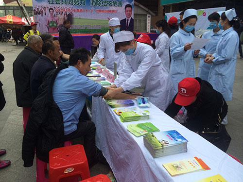 活动接近尾声时,志愿者们向在场民众分发防治结核病宣传单。活动现场还有咸宁市中心医院、咸宁市结核病防治院专家组建立的咨询区及义诊活动。此次活动让我们充分了解了结核病的危害以及如何防治结核病,为创建“绿色咸宁,健康咸宁”打下坚实的基础。