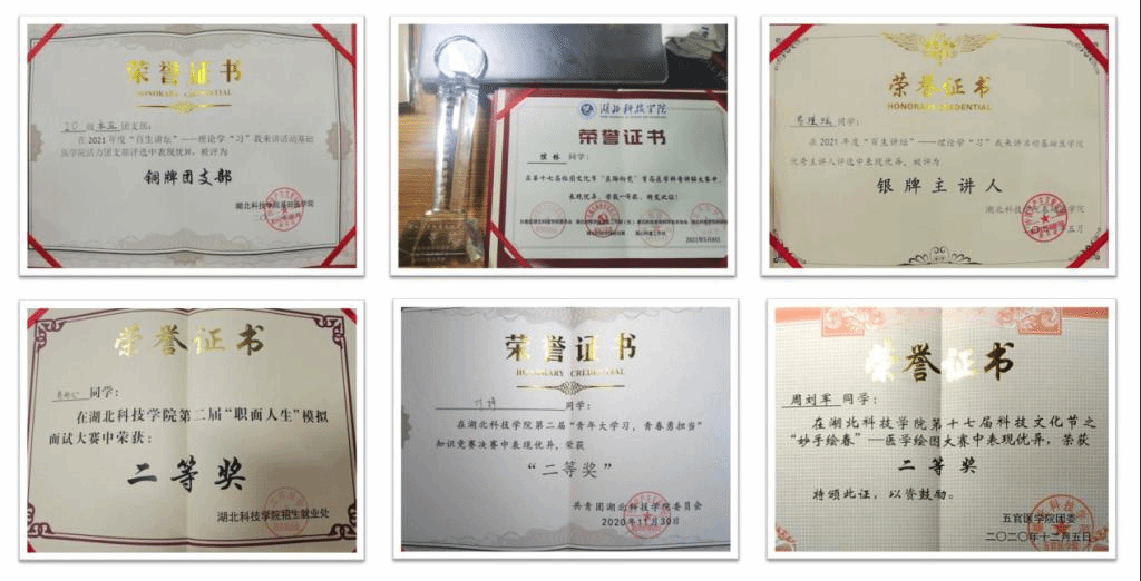 此外,周刘军、刘若冰等同学参与“妙手绘春——医学绘图”大赛,获二等奖1项、三等奖1项、优秀奖3项的好成绩;付婷同学参与“青年大学习知识竞赛”活动,获二等奖1项;王梓骜参与“建党一百年音频大赛”活动,获优秀奖;朱彦希等10余人次参与“一二·九爱国长跑活动”,获完赛证书。