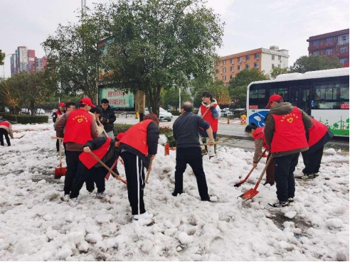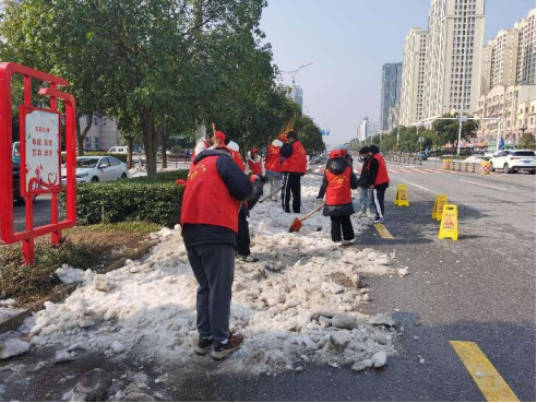 上午9点,72名员工志愿者身穿红马甲,拿着铁锹、锄头、夹子等工具,在beats365唯一官网入口官网公司南大门门口集结完毕。铲雪活动开始前,在公司纪委书记鄢文军、团委书记刘伟华以及团市委副书记曹考取等领导老师的组织带领下,志愿者们在齐心喊出“万人洁城有你我,美丽咸宁靠大家”的嘹亮口号,展现出他们对接下来的清除积雪的昂扬斗志和信心。