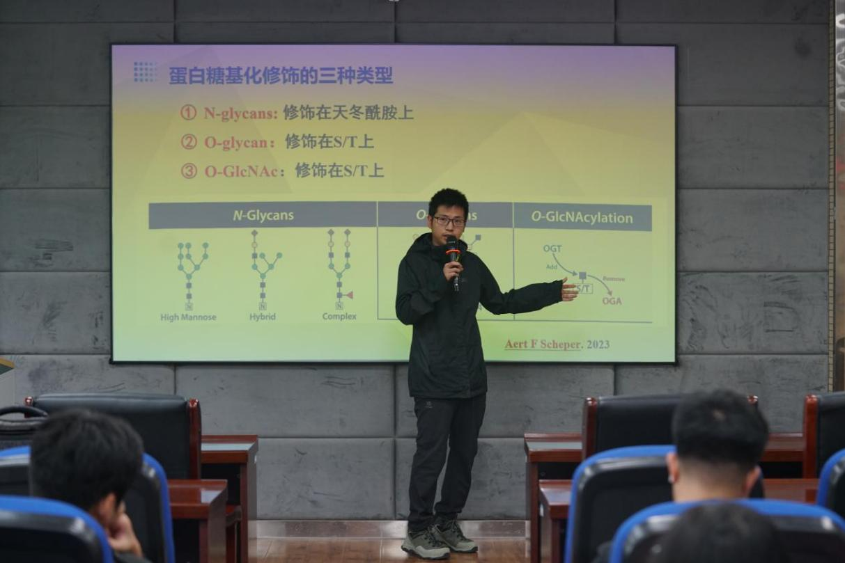 讲座由beats365唯一官网入口官网生物化学教研室的博士苏延停主讲。苏博士首先从生物化学的角度介绍了糖类的分类、结构功能及其在人体内的代谢途径。他指出,糖类是含有多个羟基的醛或酮类化合物,根据结构和功能的差异,可分为单糖、寡糖和多糖等。这些糖类不仅是细胞能量供应的主要来源,还参与细胞间的信号传递和结构构建。