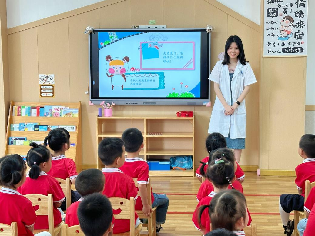 活动筹备期间,志愿者们踊跃报名,他们积极讨论如何准备一节简单有趣的手工绘画课程。经过精心策划,活动拉开帷幕。夏日炎炎,志愿者们走进教室,与孩子们面对面,用通俗易懂的语言,和小朋友们一起在扇子上绘画,涂上自己喜欢的颜色。志愿者们从季节引入,问小朋友们如何让自己在炎热的夏天变得凉爽起来,通过这一问题,小朋友们踊跃回答,有的说空调,有的说吃冰棍,有的说扇子……说到扇子,志愿者向小朋友介绍了几种类型的扇子,然后进入今天的主题“手绘清风,童心向‘扇’”。