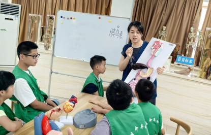 7月4日清晨,阳光正好,首批满怀好奇的小员工们在家长的温馨陪伴下,踏入了了标本馆的探索生命奥秘的之旅。林丽老师以其独有魅力化身为知识的引路人,她用生动有趣的语言,引领孩子们穿梭于人体奥秘的海洋,人体器官的奥秘在她的讲述下变得既神秘又亲切。孩子们的热情被彻底点燃,他们的小手高高举起,积极响应每一个问题,眼中闪烁着对未知世界无限的好奇与渴望。