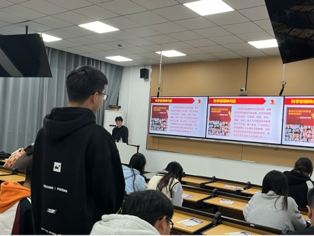 紧接着,学习委员举例向同学们介绍了几位著名科学家,并号召大家从事例中学习他们的精神。钱学森,中国航天事业的奠基人,提出了“两弹一星”等重大科技项目,为中国现代科技事业作出了卓越贡献;屠呦呦,中国药学家,多年从事中药和中西药结合研究,突出贡献是创制新型抗疟药青蒿素和双氢青蒿素,挽救了数百万疟疾患者的生命;袁隆平,中国杂交水稻育种专家,被誉为“杂交水稻之父”,致力于杂交水稻技术的研究、应用与推广,为中国及世界粮食安全作出了杰出贡献。