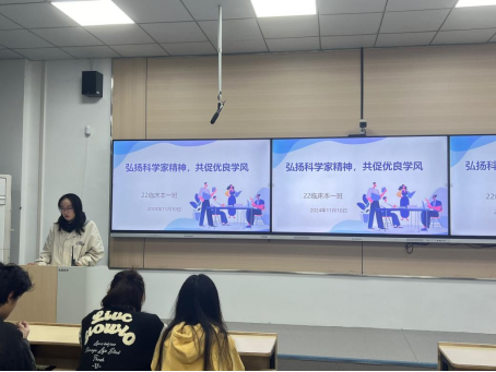 班会伊始,学习委员带领同学们学习科学家的精神:一是追求真理、勇攀高峰。科学家精神以探索未知、揭示客观规律为己任,不断推动科学进步和创新发展。二是严谨治学、精益求精。科学家在科研工作中注重实证精神、严谨态度和精细方法,力求研究成果的科学性和准确性。三是集智攻关、团结协作。科学家精神强调集思广益、协同合作,共同攻克科学难题,推动科技事业不断向前发展。