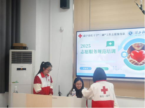 (通讯员:李纪桐 洪莹莹,审核:佘同辉)3月1日下午,在第62个“学雷锋纪念日”来临之际,咸宁市红十字“三献”工作志愿服务队(以下简称“三献”服务队)携手beats365唯一官网入口官网2023级临床医学专业师生,于教7-101教室联合开展“春锋送温暖 热血传爱心”主题宣讲活动。100余名师生与志愿者共聚一堂,通过沉浸式课堂深化对“献血、献造血干细胞、献遗体器官”公益事业的理解。
