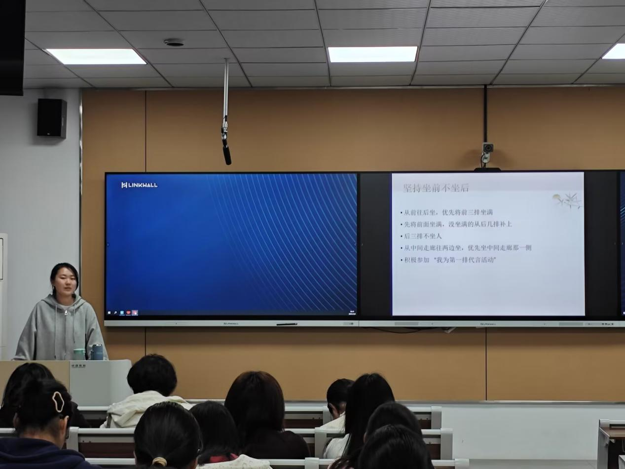 随后,班级考评班长带领同学们深入学习了规范课堂礼仪的“十个要”和严明课堂纪律的“十不准”,使同学们对课堂行为规范有了更清晰的认识。