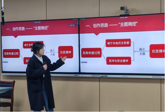 思政课公开课展演过程中,同学们带来了形式多样、精彩纷呈的作品。罗宇琪团队结合医学领域的先进事迹,讲述了“医心向党”的深刻内涵,带来的作品《红医精神:探寻三个“为什么”的精神密码》展现了当代医员工对党的忠诚和为人民健康服务的决心;柳皇希团队的作品《青衿践医梦:以红医精神照亮前行路》讲述炼炳生医生医药箱的故事,赓续“政治坚定、技术优良”的红色医者品格,让观众踏上了一段追寻红医精神的逐梦之旅。