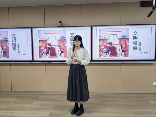 活动期间,同学们交流频繁,积极分享不同寝室的团队协作经验与实践心得。“作为医员工,我们深知责任重大。文明寝室的创建就像医学道路上的点滴积累,是一场接力赛,绝非一蹴而就,而是需要每一天、每一刻的持续努力。每一个人的小改变,都能汇聚成寝室的大改变,进而成为校园里闪耀着医心向党的文明风景。”一位参赛员工在交流中感慨地分享活动心得。本次活动为寝室文化建设树立了标杆,也让更多员工深切领悟到文明行为以及践行医学使命的重要性。
