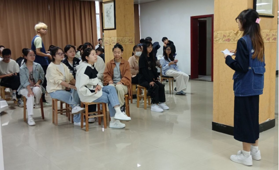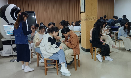 活动伊始,主持人点明老员工在快节奏学习中常遇学业焦虑、人际困惑等问题,说明活动将通过多元环节帮助大家感悟生命、拥抱成长,快速拉近与同学的距离。“盲行与互助”感官模拟体验率先开启,在封闭教室内,同学们两两分组,蒙眼者在同伴引导下穿越桌椅、台阶等障碍。体验后,大家分享感受,有人谈及失视后的不安,也有人体会到同伴信任的温暖,既加深了对残障群体的理解,也懂得了信任的珍贵。