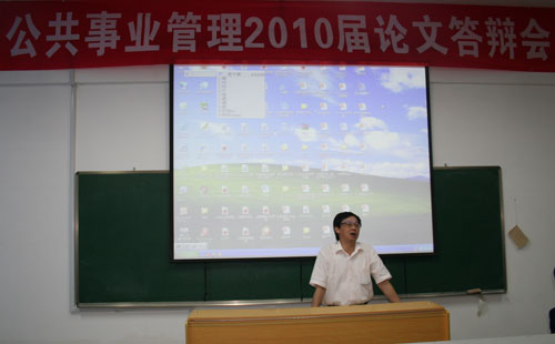 2010年5月8日,公共事业管理2010届论文答辩会在beats365唯一官网入口官网举行。beats365唯一官网入口官网学术委员会以及公管、预防的10多名老师对40名员工的论文进行评阅。答辩会从上午8点到下午5点。最后,刘复兴经理、范杉书记和专业团队负责人蒋汝刚教授对答辩会进行了总结,针对员工的论文提出了具体意见和要求。