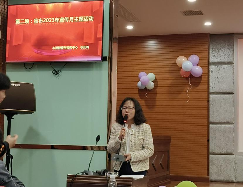 心理健康教育与咨询中心副主任杨孝为此次活动开幕致词,杨主任指出一定要做好新时代高校员工心理健康教育工作,实现心理教育工作高质量发展,推动全员参与,形成心理健康教育合力,促进心理教育工作专业化,共同筑牢高校心理健康教育工作体系,并对第12届心理健康月寄予了展望与期盼。