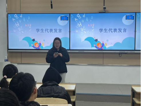班会中期,各班级优秀员工代表上台分享自己的学习经验。21临床医学(实验)班聂欣雯同学分享了她的期末复习经验:一是确定复习顺序。根据课程的重要性、难易程度以及知识点的关联性来安排复习的优先级。二是预习准备。浏览课程大纲,明确核心要点和考核要求。准备学习工具,如多色笔、笔记本、便签纸,标记重点、记录疑问和总结归纳。三是多次重复学习。医学知识的掌握,重复是关键。第一遍通读教材,全面覆盖内容,建立初步印象。第二遍精读,深入理解知识点内涵、联系及临床应用,搭配做题检验掌握程度。针对错题和模糊知识点,回归教材进行强化复习,然后第三遍快速浏览,巩固记忆,强化知识体系。四是巩固知识点,制作思维导图。总结错题,分析错误原因,包括概念理解、知识点记忆、解题思路等,制作思维导图,整合章节知识点,以人体系统为中心,串联分散知识点,形成有机整体。宏观把握知识架构,提高复习效率。22临床医学1班李爽同学则分享了英语学习的方法,备考英语四六级是一个系统工程,需要持之以恒的努力和科学的方法。通过加强英语单词学习,明确并改善弱项,同时保持并发展强项,能够更有效地提升英语水平,为考试做好充分准备。
