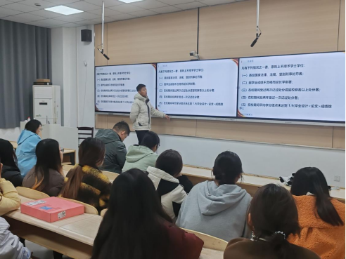 班会最后,班导师对本次班会进行了总结。23临床医学4班班导师佘同辉肯定了同学们的积极参与和精彩分享,同时也针对大家在学习中存在的普遍问题提出了宝贵的建议和殷切的期望。佘老师鼓励大家将学到的经验和方法运用到实际学习中,不断提高自身的学习能力和综合素质,共同为班级营造出优良的学风环境。