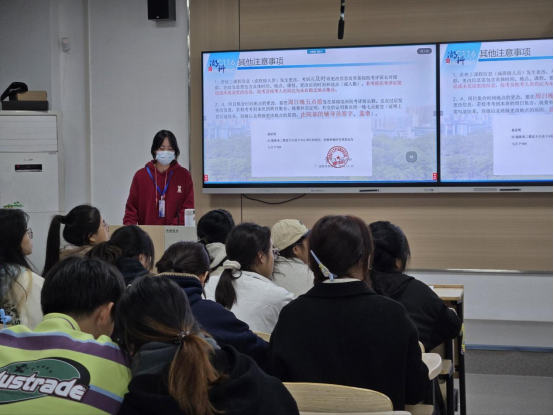同步开展的班干部业务培训围绕“服务赛事推进与班级管理”展开,学习考评部副部长袁诗燕以“班级管理与活动协同”为主题,结合考勤统计、活动衔接等实例,帮助班干部提升工作效率,为后续组织班级初赛、收集参赛材料提供实操指导;副部长柳金霞则聚焦“信息传达与反馈机制”,强调班干部需精准传递赛事通知、及时收集同学疑问,搭建“老师——员工”双向沟通渠道。