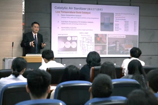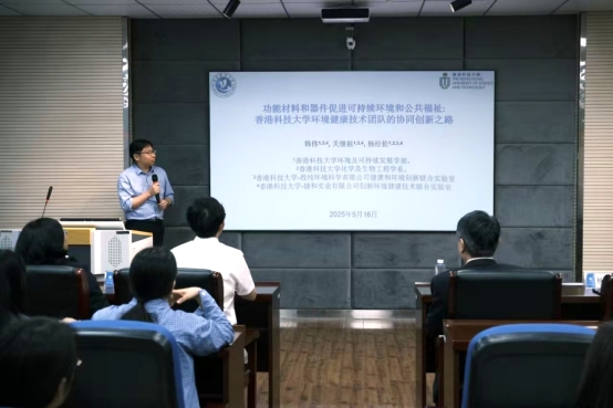 香港科技大学-致纯环境科学有限公司健康和环境创新联合实验室副主任、香港科技大学环境及可持续发展学部韩伟副教授,以“功能材料和器件促进可持续环境和公共福祉”为题介绍了香港科技大学环境健康技术团队的协同创新之路。汇报展示了团队在空气净化、饮用水净化等方面的工作,相关技术获日内瓦发明展金奖等多项国际奖项。面向未来,团队致力于“能源-环境-健康”三位一体策略,助力“健康中国”目标实施。