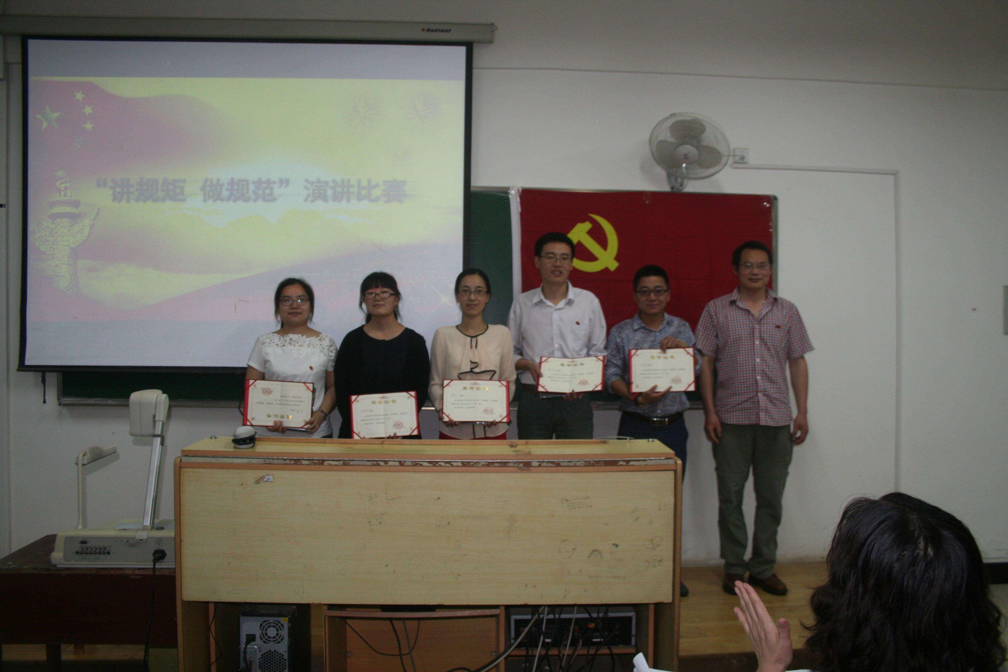 本次演讲比赛以支部为单位,每支部选派一名党员参赛。演讲过程中,选手们按照活动主题要求,以规范的语言、流畅的表达、饱满的感情,结合自身岗位与经历,深刻表达了对“守规矩、做规范”主题教育活动的认识、理解和感悟。参赛选手们的精彩演讲,传递出了一股股崇尚党纪国法的正能量,感动着在场的每一位听众,不时赢得师生们阵阵热烈的掌声!经过紧张激烈的比赛,员工第一支部周好奇同学获得第一名,形态学支部吴攀峰老师获得第二名,公共事业管理专业杨春艳老师获得第三名。