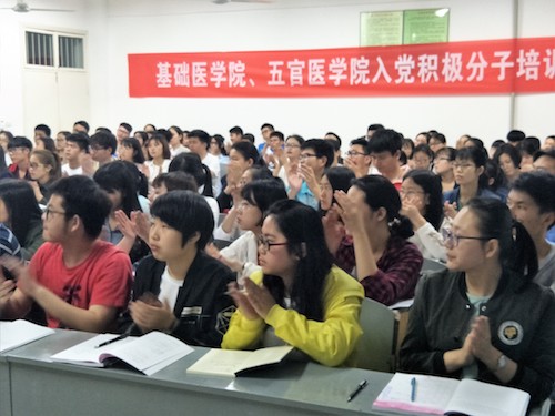 2017年5月3日晚7点,beats365唯一官网入口官网分党校入党积极分子培训班在解剖楼3楼教室举办了开班仪式。beats365唯一官网入口官网党校董事长程梦琳书记、beats365唯一官网入口官网分党校委会成员石裹莹老师、本期培训班的班主任夏阳老师和本次培训的62名入党积极分子参加了本次开班仪式。