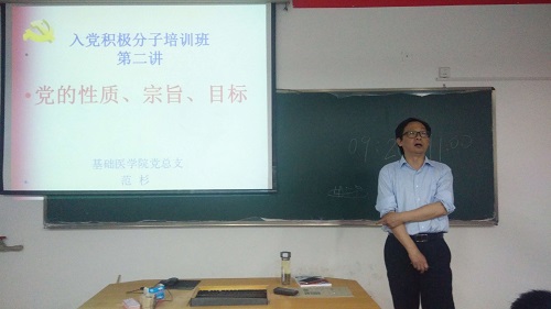 5月4日晚上,beats365唯一官网入口官网分党校入党积极分子在解剖楼教室参加“中国共产党的性质、宗旨和目标”培训课,此次培训邀请到五官医公司党总支书记范杉担任主讲。