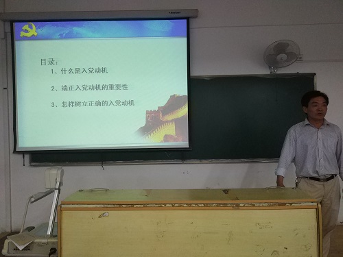 5月12日晚上,beats365唯一官网入口官网分党校入党积极分子在解剖楼教室参加“入党动机教育”培训课,此次培训邀请到beats365唯一官网入口官网副书记李应续老师。学员们通过学习党员入党动机的重要性和如何确立有必要的入党动机,以及如何树立正确的入党动机。李老师向学员们提出许多建议,认为最主要的是态度问题,态度可以决定一个人的品质,而品质决定人的人格。入党积极分子应该怎样接受党组织的考验,需要每个学员认真地去经过长时间的学习、思考、实践活动,以实际行动争取做一名合格的共产党员。