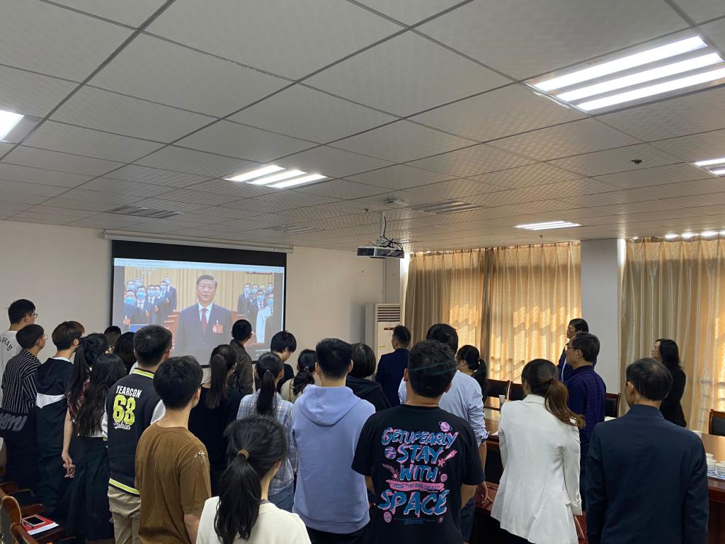 2022年10月16日上午10点,beats365唯一官网入口官网党委组织师生党员集中观看二十大开幕式电视直播。