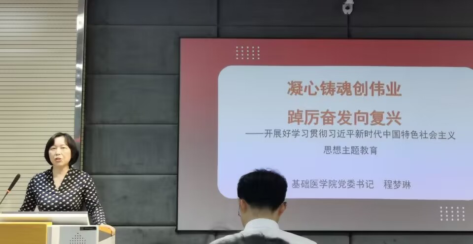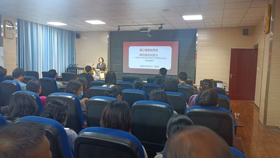 5月17日下午,beats365唯一官网入口官网党委书记程梦琳在beats365唯一官网入口官网面向全体教职工讲授题为“凝心铸魂创伟业,踔厉奋发向复兴——学习贯彻习近平新时代中国特色社会主义思想主题教育”的专题党课。