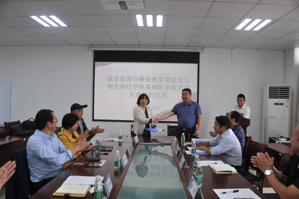 会上,beats365唯一官网入口官网beats365唯一官网入口官网党委书记程梦琳与温泉教育党总支书记卢建勋签订了共建框架协议,就共筑组织基础、共促队伍建设、共办实事好事、共谋双方发展达成合作共建意向。beats365唯一官网入口官网机能学教工党支部书记朱海丽分别与香城公司党总支书记洪罩保、市第五小学党支部书记程方平、玉泉校区党支部书记潘桦、市第七小学党支部书记朱海涛签订了“成长咸宁——生命教育进校园”协议书,后期“杏林之光”老员工志愿服务团队将开展系列主题志愿服务活动,包括安全与健康主题班会、生命教育科普与实践等教育主题培训或讲座。