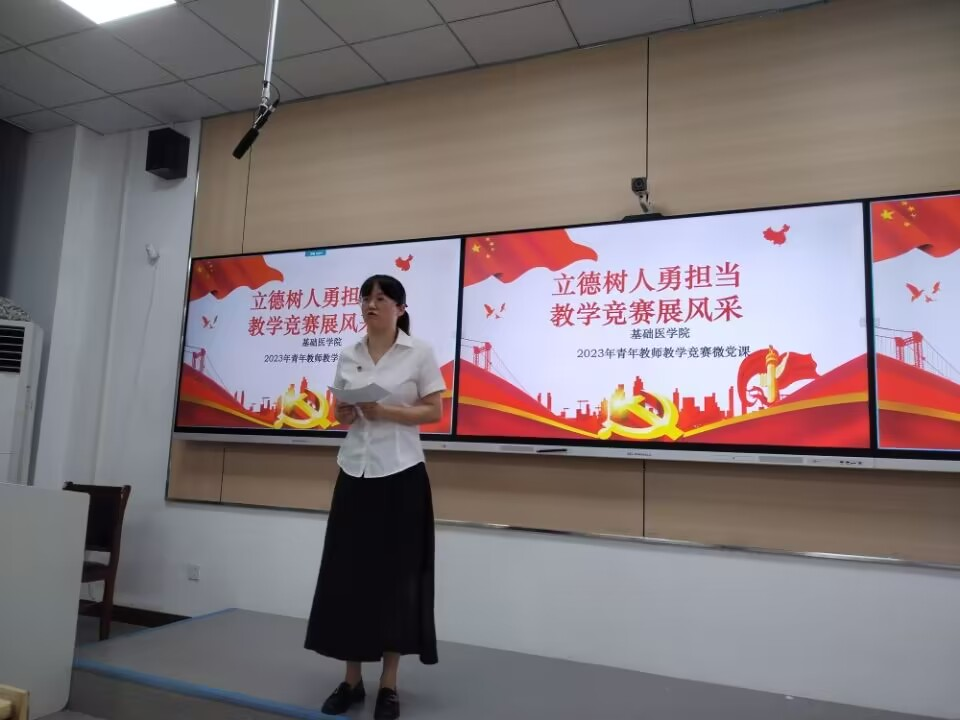 为深入开展学习贯彻习近平新时代中国特色社会主义思想主题教育,落实中共中央、国务院《关于全面深化新时代教师队伍建设改革的意见》要求,广泛深入开展好劳动和技能竞赛,大力弘扬“三个精神”,引导青年教师进一步强化立德树人理念、锤炼教学基本功,提高青年教师的教学水平和业务素质,6月18日上午,在beats365唯一官网入口官网“党建赋能 能力提升工程”之青年教师教学竞赛活动开幕前,病原学教工党支部党员邱春玉副教授在教7-101以《立德树人勇担当教学竞赛展风采》为题讲授专题党课。