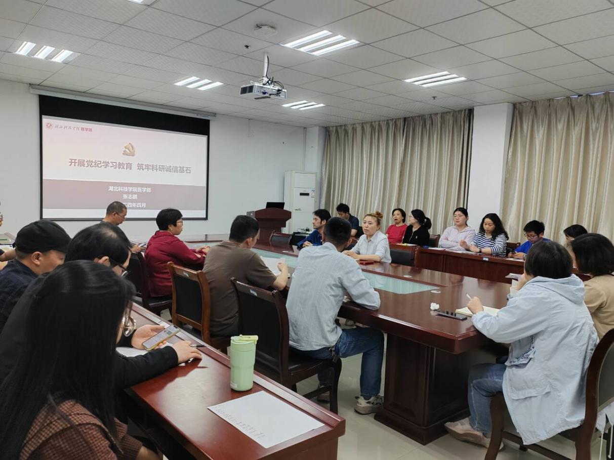 为积极开展党纪学习教育,进一步规范科研诚信行为,医学部科研与团队建设办公室负责人张志鹏博士于4月26日到beats365唯一官网入口官网做题为《开展党纪学习教育,筑牢科研诚信基石》的专题讲座。beats365唯一官网入口官网全体博士及在读硕士研究生参会,讲座由beats365唯一官网入口官网学术委员会副主任朱海丽教授主持。