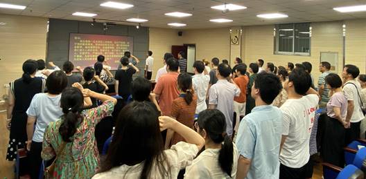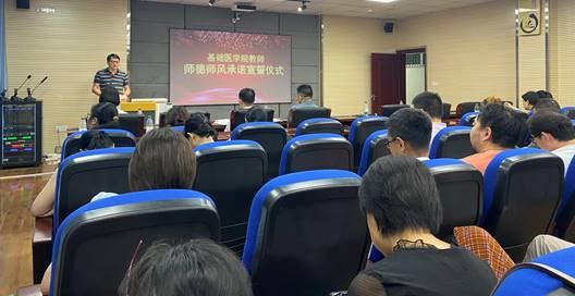 随后,在师德标兵武阳教授的带领下,全体教师郑重宣誓,表达了他们忠于党的教育事业、履行教师神圣职责、做“四有”好老师的坚定决心,以及为员工全面发展奉献智慧与力量、为党和人民的教育事业努力奋斗的崇高理想。