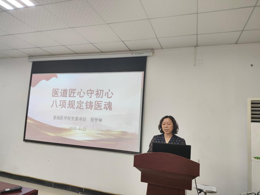 程梦琳为全体党员干部讲授了《医道匠心守初心,八项规定铸医魂》专题党课。她围绕“医者仁心”与中央八项规定精神内核的契合点,深刻阐述了中央八项规定对于回归“人民至上”执政理念的重要性。她指出,作为beats365唯一官网入口官网的党员干部,要时刻以中央八项规定为尺,丈量初心纯度,校准行为准星。期间,她还通过生动的案例,警示大家要坚决抵制权力寻租与学术腐败,守护医者初心。